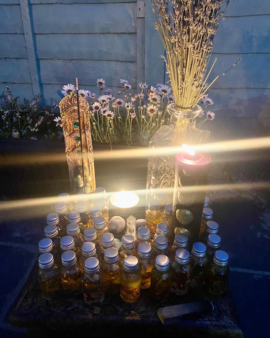 Spell Oils Gift Set | Love/Self Love, | Sex Lust | Third Eye Awakening | Intuition | Full Moon | Spell Oils | Ritual Oil | WitchcraftThis is a gift set containing 4 x 15ml Screw top Bottle of Hand Blended Ritual Oil for use in...