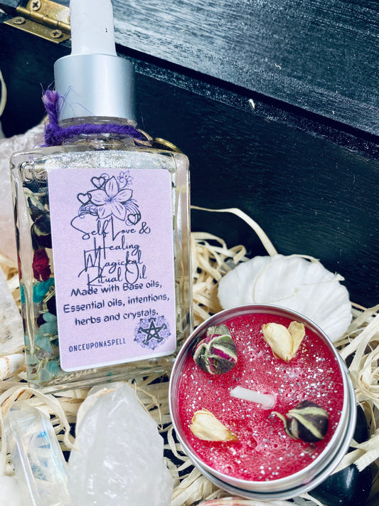 Self-love & Healing Ritual Oil including Spell Candle | Witchcraft | Wiccan | Pagan | Love Spell | Oil | Essential OilsThis is a 30ml Glass Dropper bottle of my own personal blend of Essential oils and Base oils for Self-Love...