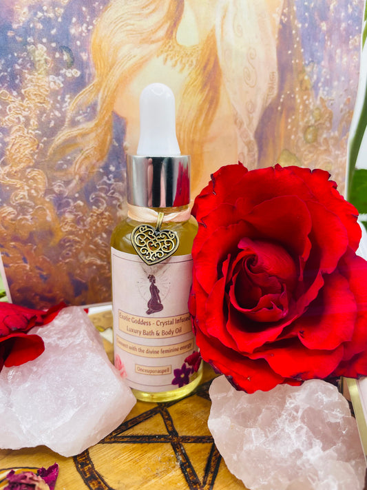 Exotic Goddess Luxury Bath & Body Oil | Feminine Energy | Crystal Infused | Wicca | Pagan | Witchcraft | Healing | Relax | Aromatherapy SpaAbsolutely Beautiful Magical Exotic Goddess Bath & Body oil infused with crystals. Use before or after Spell-casting/Rituals, for some self...