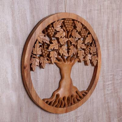 Large Tree of Life Grapes Panel - 40cm | Suar Wood | Decoration | Wall Hanging | Wall Art | Spirituality | Wiccan | Pagan | Gift | BohoThis is a beautiful 40x40 Tree of Life with Grapes Panel. It is sure to be a statement piece! This...