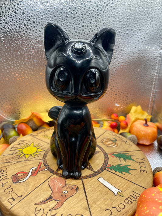 Luna Moon Cat Natural Black Obsidian Crystal Carving | Black Cat | Kitty | Witchcraft | Wiccan | Pagan | Reiki | Chakra | 14.5cm | OrnamentAbsolutely Stunning Large Natural Obsidian Luna Moon Black Cat Crystal Carving - she stands at 14.5cm Tall and weighing 720g!!...