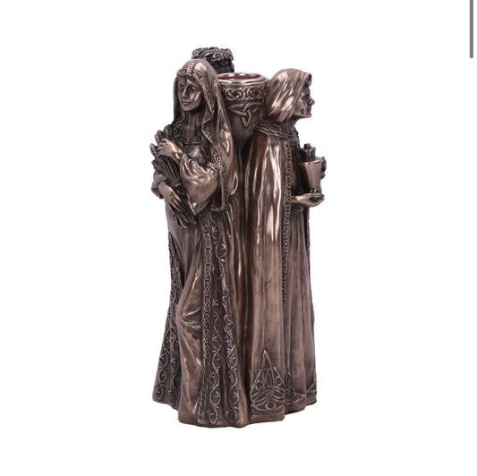 Maiden, Mother, Crone Candle Holder 17cm | Goddess | Deity | Wiccan | Pagan | Witchcraft | Spiritual | Candle | MoonMaiden, Mother, Crone Candle Holder.Cast in the finest resin.Expertly hand-painted.Bronze finish. This Maiden, Mother, and Crone Candle Holder, has been...