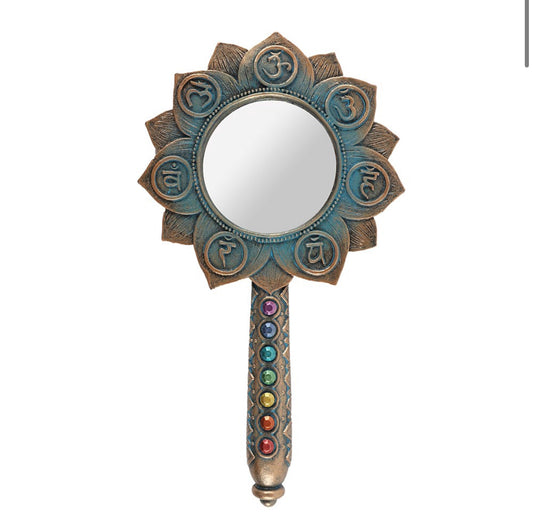 Bronze Lotus Flower Chakra Hand MirrorThis lotus flower hand mirror is accented by symbols and gems representing the seven chakras and is finished with an...