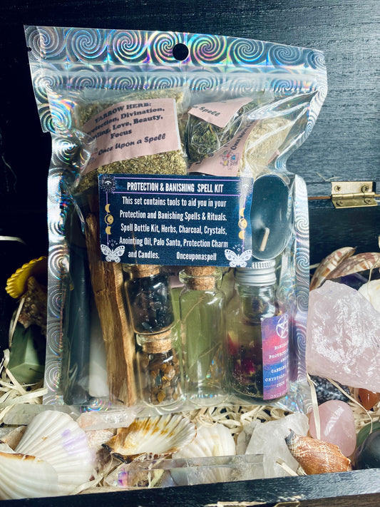 Banishing & Protection Spell Casting Kit | Wiccan | Pagan | Witchcraft | Spell Bottle | Candles | Oils | Herbs | IncenseThis is a Large Banishing & Protection Spell Casting Kit which includes: 8 Herbs2 small crystal chip bottles1 Empty Spell...