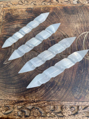16 by 1.5cm Pointed Selenite Wand | Crystals | Crystal Healing | Chakra | Reiki | Witchcraft | Wiccan | Pagan | Third Eye |Pure | Charging