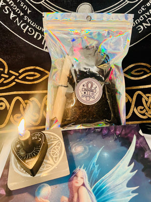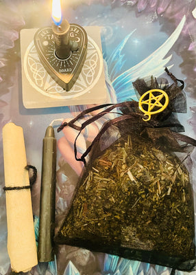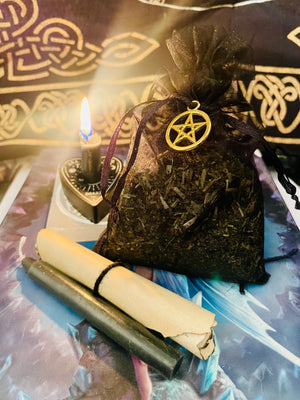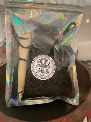 Made using Black salts, sea salt, magical herbs, crystals and essential oils. You will receive a Black Spell candle & a scroll with instructions.
