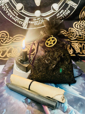 This is a large bag filled, blessed and charged with intentions. My Shield Sachets are made during the Full Moon, in ritual with a black anointed candle burning.