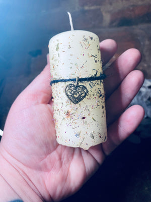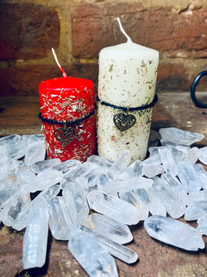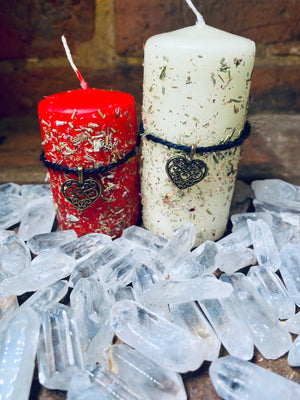 2 x dressed Pillar Candles with herbs associated Aphrodite/Venus for Love and Self love rituals and spells.