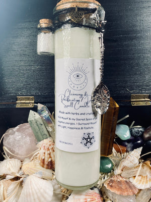 This beautiful 7 day Cleansing and Purification Spell Candle comes with a small spell bottle of Sea Salt and a gorgeous Altar Spoon.