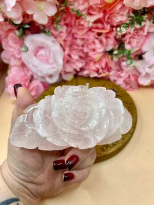 Bring the gentle, loving energy of Rose Quartz into your life with this stunning hand-carved rose crystal. Shaped into a delicate rose bloom, this piece is a symbol of unconditional love, healing, and beauty—perfect for your altar, sacred space, or as a meaningful gift for a loved one.