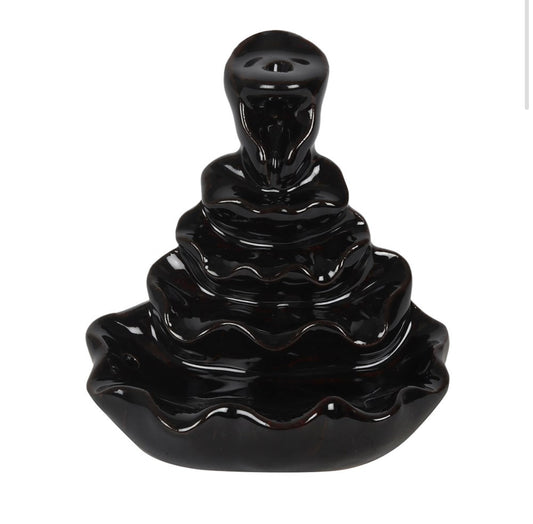 4 Tier Ripple Back flow Incense BurnerA black ceramic backflow incense burner with a rippled tier design. When a backflow cone is placed on top, smoke...
