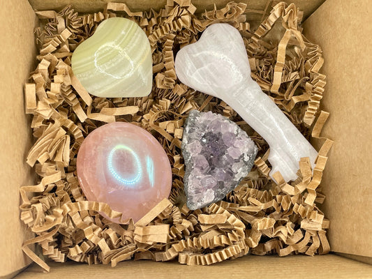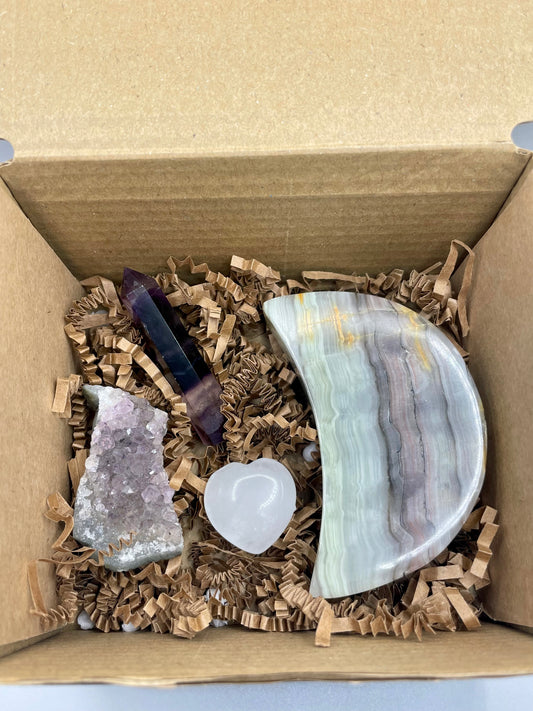Witchy Crystal Bundle | Onyx | Moon | Crystals | Reiki | Chakra | Witchcraft | Wiccan | Pagan | Gift | Fluorite | heart | QuartzA Unique selection of High Quality Crystals put together to make this gorgeous set include: 1 x Large pink banded...