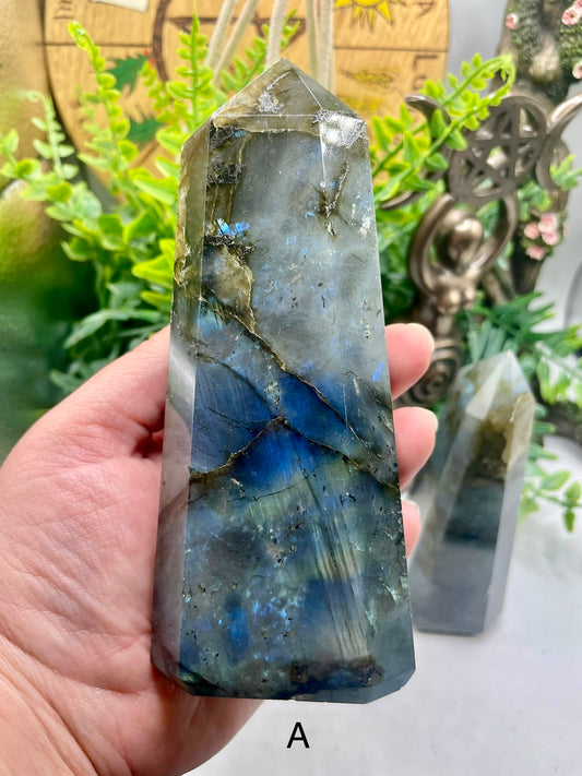 High Grade Flashy Labradorite Polished Towers/Points | Crystals | Reiki | Chakra | Gemstones | Shiny Rainbow Crystal | Home Decor | RainbowAbsolutely Beautiful Labradorite Polished Towers/Points A: 548g 14cm tall and 5-6cm wide B: 447g 13cm tall and 5-6cm wide Labradorite...