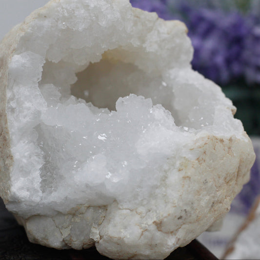 Coloured Calsite Geodes - Natural Rock - Purple & GoldThis beautiful Calcite Geode - Natural Rock - Purple & Gold, offers its colour once opened, the crystals which formed there...