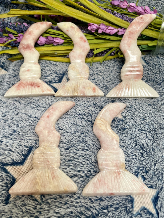 Natural Strawberry Jasper Witches Broom | Witchcraft | Wiccan | Pagan | Broomstick | Crystal | Gemstones | Carving | Reiki | Chakra | HealGorgeous Witches Broomstick Natural Strawberry Jasper Carvings. They are 10cm Tall and weigh approx 75g. They will stand freely as...