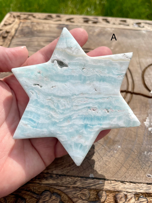 Natural Caribbean Calcite Stars | Witchcraft | Wiccan | Pagan | Crystal | Ornament | Gemstones | Healing | Polished | Carved | StarBeautiful Caribbean Calcite Stars 3 Sizes - Small Medium and Large A B C Caribbean Calcite is a stone of...