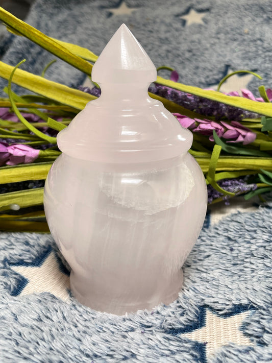 Natural Pink Calcite Jar | Trinket | Crystal | Witchcraft | Wiccan | Pagan | Gemstone | Storage Jar | Decoration | Jewellery Jar | OrnamentBeautiful Pink Calcite Storage Jar - 10cm Tall including lid and 5cm Wide and weight is 300g approx. You will...