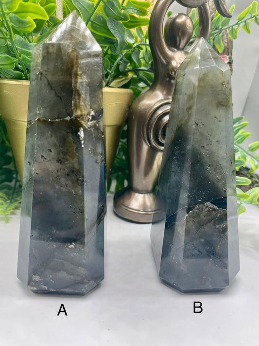 High Grade Flashy Labradorite Polished Towers/Points | Crystals | Reiki | Chakra | Gemstones | Shiny Rainbow Crystal | Home Decor | RainbowAbsolutely Beautiful Labradorite Polished Towers/Points A: 548g 14cm tall and 5-6cm wide B: 447g 13cm tall and 5-6cm wide Labradorite...