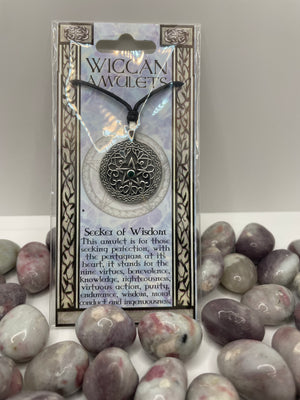 Made from fine pewter, these Wiccan amulet charm necklaces are great gifts for anyone with a fascination for all things magic. There are 12 different charm variations which include; The Pentacle of Life, Seeker of Wisdom, Mystic Pentacle, Astral Senses and many more.