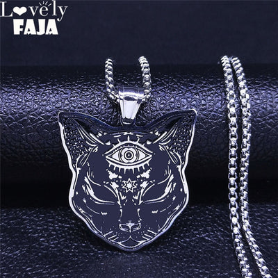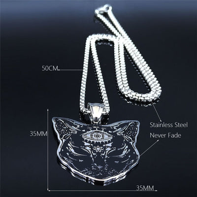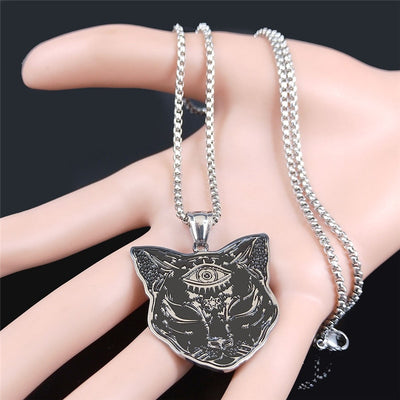 Witchcraft Eyes Cat Stainless Steel Necklace Mysterious Divination Baphomet Occult Necklace Jewelry
