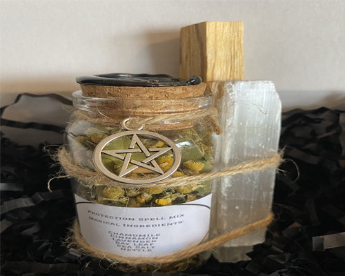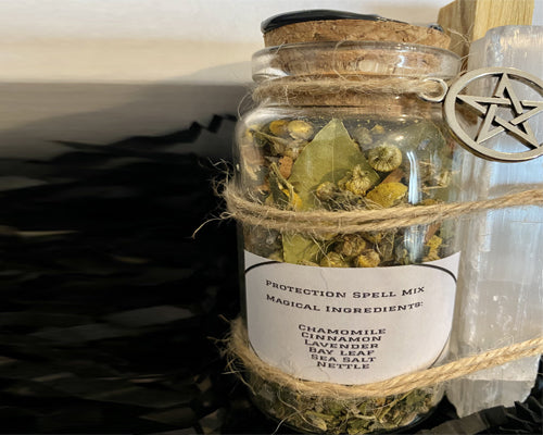 You can use this mix to add to spell bottles, grind into incense, scatter around candles, boil into a protection spray, make anointing Oil, grind and add to spell candles and however else you like to use materials in your spell work.