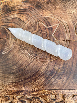 16 by 2cm Pointed Selenite Wand | Crystals | Crystal Healing | Chakra | Reiki | Witchcraft | Wiccan | Pagan | Third Eye | Purity | Charging