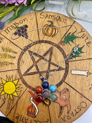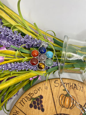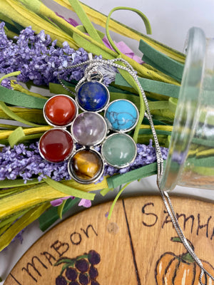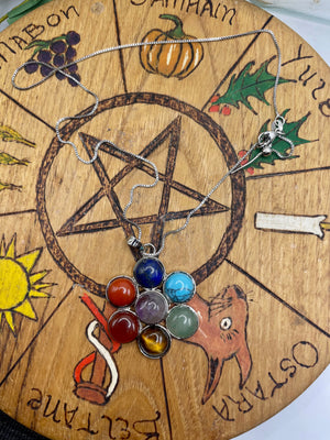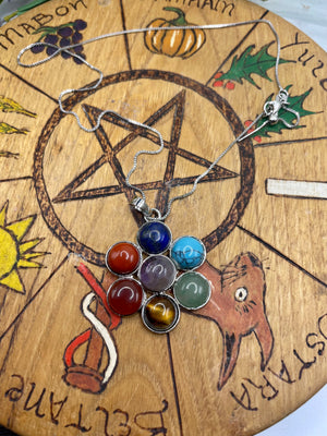 7 Chakra Flower Pendant Necklace | Reiki | Chakras | Jewellery | Amulet | Wicca | Pagan | Witchy | Costume Jewellery | Gift | Crystal