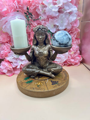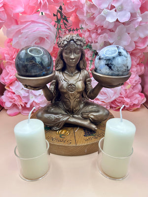 Embrace the divine feminine with this beautifully crafted 3D printed Grounding and Balance Goddess Dryads Candle and Crystal Sphere Holder, a perfect centerpiece for your altar, sacred space, or home decor.