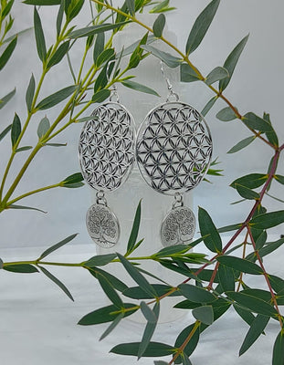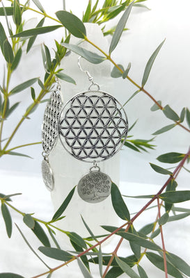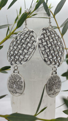 Large Flower of Life & Tree of Life Chandelier Earrings | Wiccan | Pagan | Spirituality | Jewellery | Gift | Boho | Witchy | Dangle | Charms