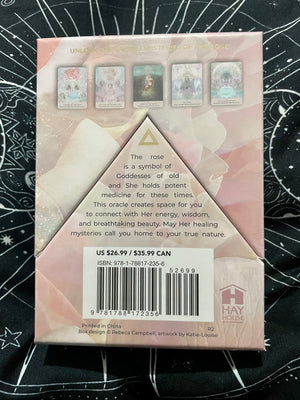 I was guided to create this oracle to help lift the veil of the ancient rose mysteries and reconnect you with the sacred energy of The Rose, who I believe is a potent healer for these times. The Rose first came to me in a way that I consciously understood in 2010 and I have been working with Her physically, creatively and spiritually ever since.