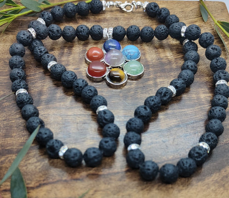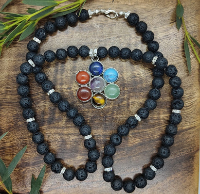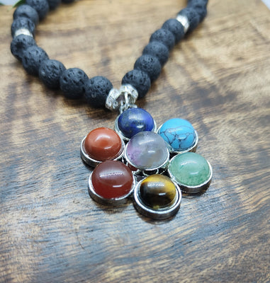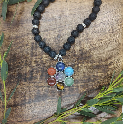 Unique Flower Pendant Chakra Lava Bead Necklace | Chakras | Reiki | Spirituality | Crystal Healing | Witchcraft | Wiccan | Pagan | jewellery