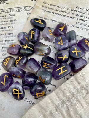 Natural Amethyst Runes Stones Set | Viking | Elder Futhark | Divination | Spiritual Healing | Crystals | Stones | Pagan | Witchcraft