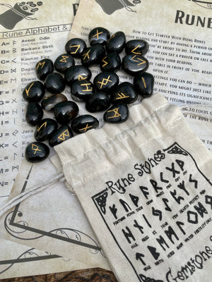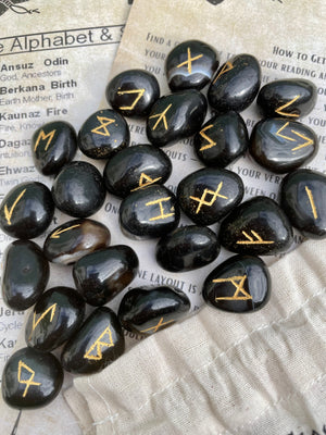 Natural Black Agate Runes Stones Set | Viking | Elder Futhark | Divination | Spiritual Healing | Crystals | Stones | Pagan | Witchcraft