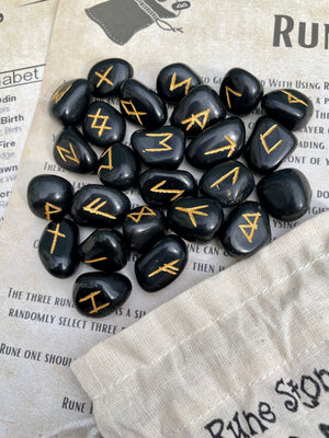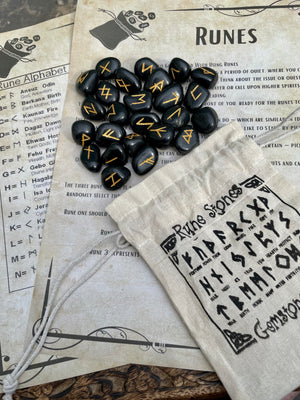 This is a beautiful Gift Set containing 34 Natural Black Onyx Runes presented in a beautiful pouch.