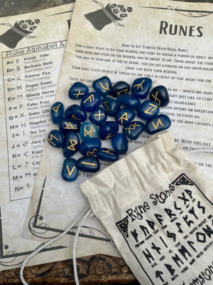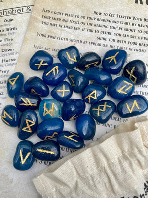 Natural Blue Onyx Runes Stones Set | Viking | Elder Futhark | Divination | Spiritual Healing | Crystals | Stones | Pagan | Witchcraft