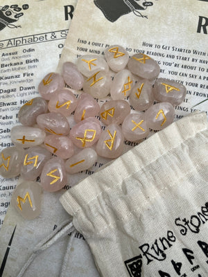 Natural Rose Quartz Runes Stones Set | Viking | Elder Futhark | Divination | Spiritual Healing | Crystals | Stones | Pagan | Witchcraft
