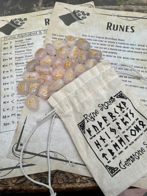 This is a beautiful Gift Set containing 34 Natural Rose Quartz Runes presented in a beautiful pouch.