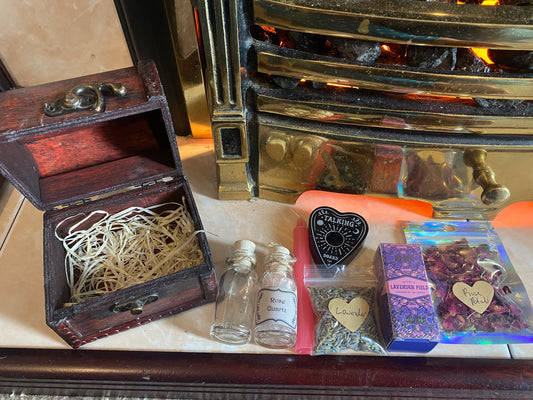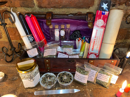Witches Starter Kit Chest of Supplies | Gift set | Apocathery | Candles | Incense | Witchcraft | Wiccan | Pagan | Magic | Oils | HerbsA gorgeous chest filled with Hand made magical supplies & Essentials. Perfect for a beginner or to add to your...