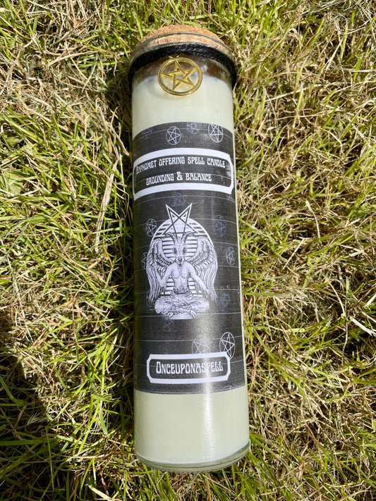 Baphomet Offering Spell Candle - Grounding and Balance | Witchcraft | Wiccan | Pagan | Jar Candle | Crystals | Herbs | Horned God | RitualThis is a Large Jar Spell Candle that can be used as an offering to Baphomet (the horned god). 50...