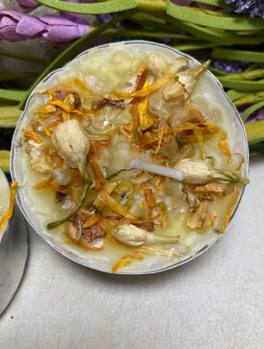 Love/Self-Love XL Spell Tea-Lights | Love Spell | Pagan | Witchcraft | Wiccan | Spells | Herbs | CrystalsSet of 2 XL Love/Self-Love Tea-Light candle set. Made using herbs blessed with Loving energies and including Rose Quartz crystals....
