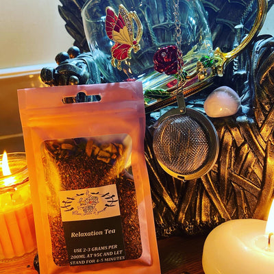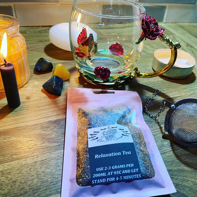 Add some sophistication to your tea Magick with my version of a witches brew Tea Set! This beautiful Glass butterfly teacup set comes with Relaxation Tea & a Ball Tea Infuser.