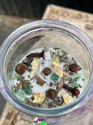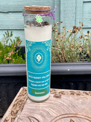Luck & Prosperity Jar Spell Candle | Witchcraft | Wiccan | Pagan | Candles | Crystal | Aventurine | Peridot | Money | Wealth | Spell | Gift