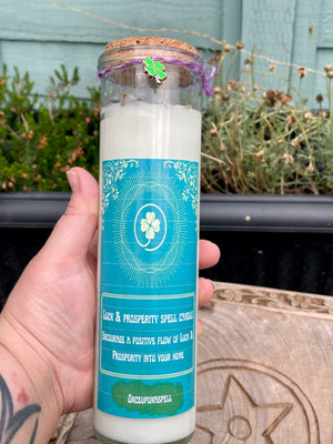 This is a Large Jar Spell Candle for Luck & Prosperity.