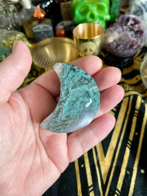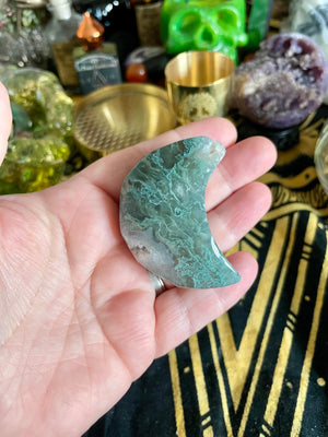 Moss Agate Crystal Moon | Crystal Carving | Wicca | Pagan | Reiki | Chakra | Moon Energy | Healing | Gift | Witchcraft | Earth Energy