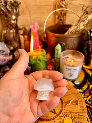 Mushroom Cottage Selenite Crystal Carving | House | Crystals | Reiki | Chakra | Spirituality | Witchy | Wicca | Pagan | Ornament | Gift