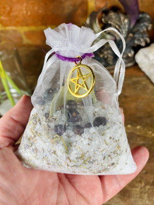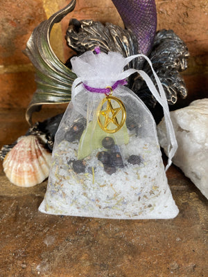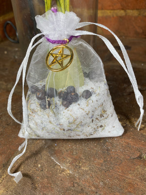 A beautiful Organza bag filled with Magickal corresponding herbs and Salts for Protection.