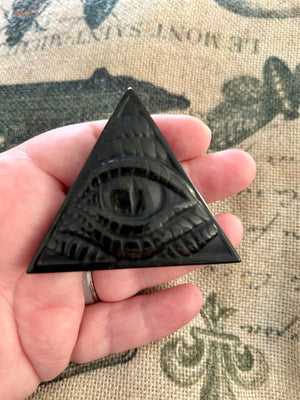 All Seeing Eye Silver Sheen Obsidian Crystal Carving/Amulet.