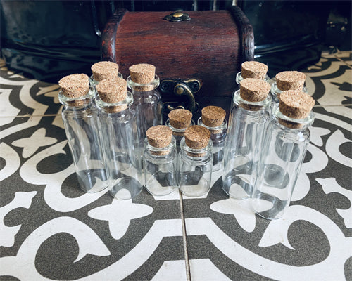 A small chest containing 8 x 15ml empty spell bottles and 4 x 7ml empty spell bottles.