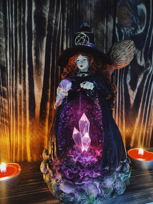 Backflow Burner Witch with Purple Crystal 12 X 9.5 X 17.5 cm