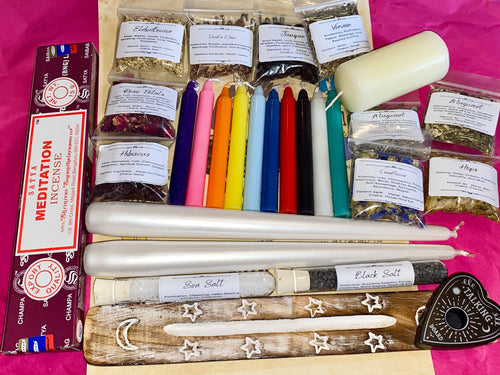 Witches Spell Candles & Herbs starter kit - Spell Candles | Wiccan | Pagan | Witchcraft | Incense | Pillar Candle | Spells